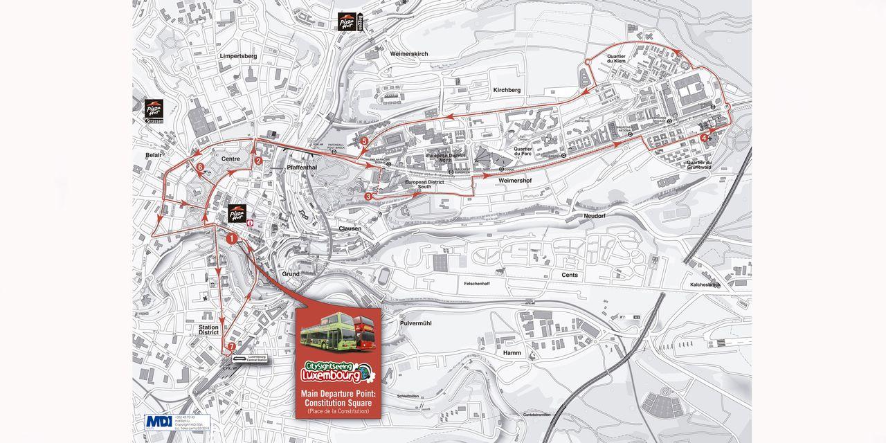 Hop on hop off Luksemburg zemljevid